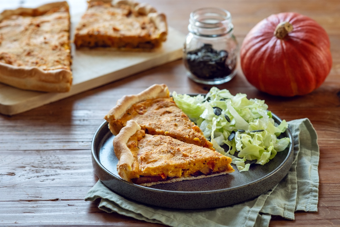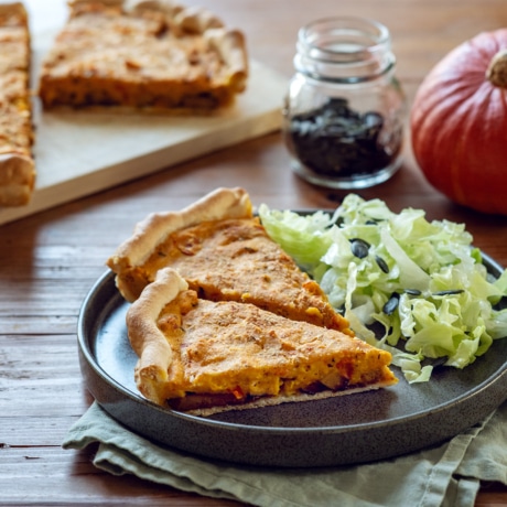 Recette: Quiche végétalienne au potimarron et aux lardons de tofu fumé