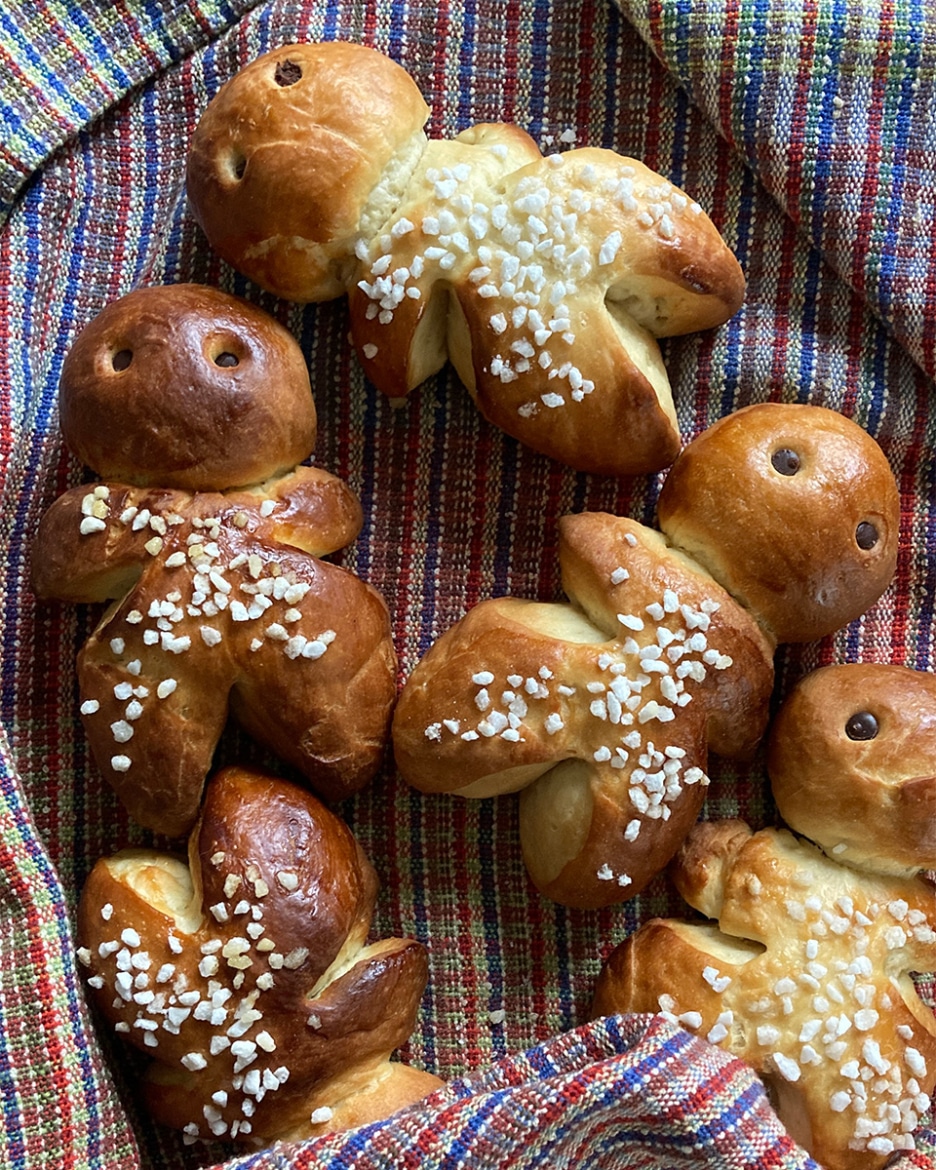 Cela dit, comme on approche de la Saint Nicolas, c’est évidemment l’occasion parfaite de préparer de délicieux petits bonshommes en pâte briochée (connus sous le doux nom de Grittibänz en Suisse Allemande, ou de Mannala en Alsace). Voire même de commencer la production annuelle de biscuits de Noël 😍