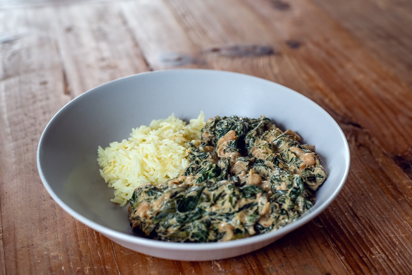 Après en avoir mangé à peu près toutes les semaines pendant plusieurs mois, j’en suis un peu revenue, mais je trouve toujours ce plat très bon et réconfortant. Pour ma part j’utilise des épinards surgelés (car flemme absolue de cuisiner des épinards frais, le légume le plus frustrant de la création), et je le sers avec du riz.